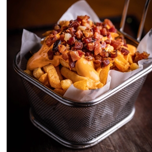 Pão, carne, queijo, bacon, salada, batata palha e molho especial